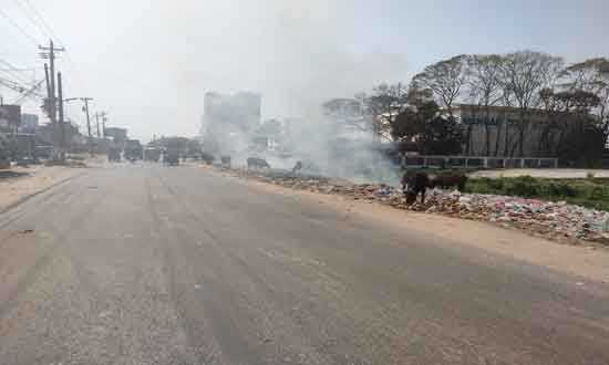 হাজীগঞ্জ (চাঁদপুর) : মহাসড়কের পাশে ময়লার স্তুপ -সংবাদ