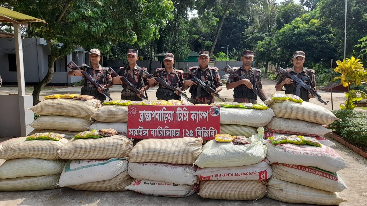 ব্রাহ্মণবাড়িয়ায় বর্ডার গার্ড বাংলাদেশ (বিজিবি) পৃথক অভিযানে প্রায় দেড় কোটি টাকার ভারতীয় শাড়ি, ফুচকা ও মাদকদ্রব্য জব্দ করেছে।