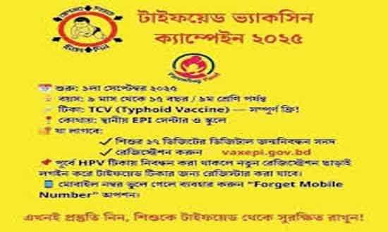এই টিকাদান কর্মসূচি শিশুদের জীবন বাঁচাতে এবং তাদের সুস্থ ভবিষ্যৎ নিশ্চিত করতে অত্যন্ত জরূরি। আমাদের টাইফয়েডের টিকা দানের লক্ষ্যমাত্রা ২ লক্ষ ২৬ হাজার।