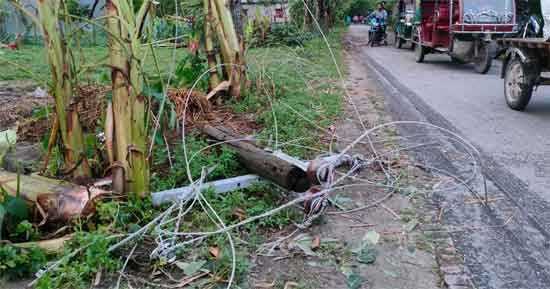 ঘূর্ণিঝড়ের আঘাতে বিদ্যুৎ সরবরাহ বন্ধ হওয়ার চার দিন পার হলেও রংপুরের গঙ্গাচড়ায় ঘূর্ণিঝড়ে ক্ষতিগ্রস্ত এলাকায় এখনো বিদ্যুৎ সংযোগ ফিরে আসেনি। এতে চরম ভোগান্তিতে পড়েছেন স্থানীয়রা। গত রোববার সকালে ঘূর্ণিঝড়ের তাণ্ডবে উপজেলার প্রায় ৮শ বাড়ি লন্ডভন্ড হয়ে যায়। একাধিক বিদ্যুৎ খুঁটি উপড়ে পড়ে এবং লাইন ছিঁড়ে যায়। ফলে পুরো ঘূর্ণিঝড়ে ক্ষতিগ্রস্ত এলাকা ও আশে পাশের এলাকায়ও বিদ্যুৎ সরবরাহ বন্ধ হয়ে যায়। গতকাল মঙ্গলবার সকালে সরেজমিন ক্ষতিগ্রস্ত এলাকায় যেয়ে দেখা যায় তিনদিন পেরিয়ে গেলেও এখনো অনেক গ্রাম অন্ধকারে ডুবে আছে। স্থানীয় বাসিন্দারা জানান, বিদ্যুৎ না থাকায় যোগাযোগ ও দৈনন্দিন কাজ ব্যাহত হচ্ছে। পানির পাম্প চালানো যাচ্ছে না, মোবাইল চার্জ দিতে হিমশিম খেতে হচ্ছে। সবচেয়ে বিপাকে পড়েছেন ছোট ব্যবসায়ী ও শিক্ষার্থীরা।