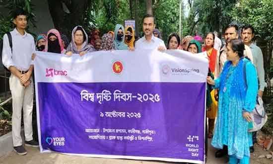 গাজীপুরের কালীগঞ্জে যথাযোগ্য মর্যাদায় পালিত হয়েছে বিশ্ব দৃষ্টি দিবস। দিবসটি উপলক্ষে বৃহস্পতিবার, (০৯ অক্টোবর ২০২৫) সকালে উপজেলা পরিষদ চত্বর থেকে একটি বর্ণাঢ্য র্যালি বের হয়ে উপজেলার বিভিন্ন সড়ক প্রদক্ষিণ করে।