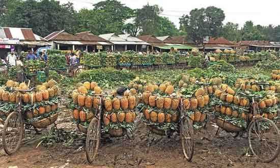 কলার পাইকার হাবিজুল ইসলাম জানান, আনারসের বাজার প্রতিদিন। কলার বাজার শনিবার বাদে প্রায় প্রতিদিন, আদা কচুর হলুদ পেপের বাজার প্রতিদিন। ব্গান থেকে কৃষকরা সরাসরি বাজারে নিয়ে আসে নগদ তামে বিক্রি করে চলে যায়। পাইকারা বিভিন্ন জেলা থেকে আসে। তারা কৃষি পন্য কিনে নিয়ে যায়। এভাবে সারা বছরই এ বাজারে কৃষি পন্য বেচাকেনা হয়। বৃহৎত্তর কৃষি পন্যের বাজার হিসেবে সারা দেশেই এ বাজারের সুনাম রয়েছে।