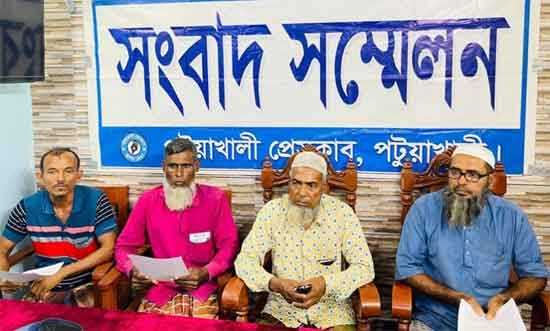 পটুয়াখালী গলাচিপা উপজেলার চরবাংলায় ডিসিআর প্রাপ্ত ভূমীহীনদের জমি দখল, চাষাবাদে বাঁধা ও প্রাণনাশের হুমকী দিচ্ছে স্থানীয় বিএপির সভাপতির নেতৃত্বে সন্ত্রাসিরা। এমন অভিযোগ করেন চরবাংলা বিত্তহীন কৃষক সমবায় সমিতির সদস্যরা। গতকাল বৃহস্পতিবার দুপুরে পটুয়াখালী প্রেসক্লাব সম্মেলন কক্ষে এক সংবাদ সম্মেলনের মাধ্যমে বিত্তহীন সমবায় সমিতির সভাপতি মো. সেরাজ খান এক লিখিত বক্তব্যের মাধ্যমে উপস্থিত সাংবাদিকদের মাঝে এমন অভিযোগ আনেন। তিনি অভিযোগে জানান, প্রতি পরিবারের নামে দেড় একর করে ১৫৫ বিত্তহীন পরিবার দীর্ঘ ৩০-৩৫ বছর ধরে সরকারী খাস জমির ডিসিআর নিয়ে চাষাবাদ করে আসছেন। সম্প্রতি চর বিশ্বাস ইউনিয়নের বিএনপির সভাপতি মো. বাকের বিশ্বাস, সংগঠনিক সম্পাদক আ. মতিন হাওলাদারের নেতৃত্বে স্থানীয় সন্ত্রাসিরা ভূমি দখল করে নেয়ার চেষ্টায় বার বার হুমকী দামকি দিয়ে চলছে। ডিসিআর পাপ্ত কৃষকদের এলাকা ছাড়াসহ চাষাবাদ বন্ধ করার হুমকি দিয়ে চলেছে সন্ত্রাসিরা। ফলে কৃষক পরিবারগুলো চরম নিরাপত্তাহীনতার মধ্যে রয়েছে। এনিয়ে জেলা প্রশাসক, পুলিশ সুপার, উপজেলা নির্বাহী কর্মকর্তা ও থানার ভারপ্রাপ্ত কর্মকর্তার কাছে প্রতিকার চেয়ে দ্রুত ব্যাবস্থা নেয়ার আহ্বান জানান চরবাংলা বিত্তহীন কৃষক সমবায় সমিতির সদস্যরা।
