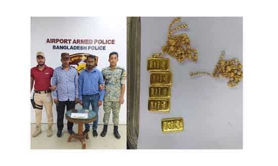 ঢাকায় হজরত শাহজালাল আন্তর্জাতিক বিমানবন্দরে ৭৬১ গ্রাম স্বর্ণালংকারসহ বেসামরিক বিমান চলাচল কর্তৃপক্ষের (বেবিচক) কর্মীসহ দুই ব্যক্তিকে গ্রেপ্তার করেছে বিমানবন্দর আর্মড পুলিশ ব্যাটালিয়ন (এপিবিএন)। গতকাল বৃহস্পতিবার রাতে এ দুইজনকে গ্রেপ্তার করা হয়। তারা হলেন বেবিচকের বোর্ডিং ব্রিজ অপারেটর মো. কবির হোসেন (৫৩) ও তার সহযোগী মো. কুদ্দুছ (৪১)।