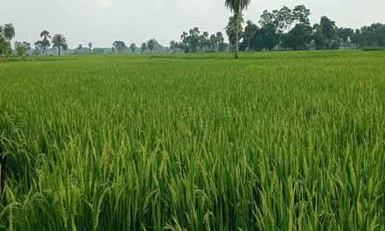 কেশবপুর (যশোর) : উপজেলা লক্ষ্মীনাথকাটি গ্রামের উঁচু জমিতে লাগানো আমন ধান খেত -সংবাদ