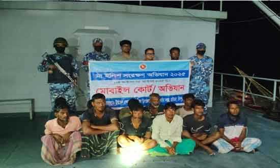 পরবর্তীতে কোস্ট গার্ড নয়ানী আউটপোস্টে হাইমচর উপজেলা সহকারী কমিশনার (ভূমি) স্বরুপ মুহুরী ভ্রাম্যমাণ আদালত পরিচালনা করে আটককৃত ১১ জন জেলের মধ্যে ৮ জনকে ১৫ দিন করে সশ্রম কারাদন্ড প্রদান করেন। অপ্রাপ্ত বয়স্ক ৩ জনকে মুচলেকা দিয়ে অভিভাবকের কাছে দেয়া হয়।
