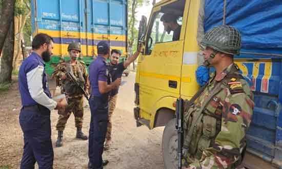 চাঁদপুর সদর উপজেলায় চাঁদপুর আর্মি ক্যাম্পের তত্ত্বাবধানে যৌথ বাহিনী কর্তৃক ভ্রাম্যমাণ চেকপোষ্ট স্থাপন করে ৮১টি যানবাহন তল্লাশি করা হয়েছে। ১২ অক্টোবর ২০২৫ তারিখ রাত পৌনে চারটা থেকে ভোর ৬:১০টা মিনিট পর্যন্ত যৌথ বাহিনীর নেতৃত্বে সদর উপজেলার ইসলামপুর এলাকায় পুলিশের সাথে সমন্বয়পূর্বক ভ্রাম্যমাণ চেকপোষ্ট বসিয়ে লাইসেন্স বিহীন চালক, ফিটনেস বিহীন গাড়ি, অধিক গতিতে গাড়ি চালানো, হেলমেট বিহীন মোটরসাইকেল চালানোর বিরুদ্ধে চাঁদপুর সদর আর্মি ক্যাম্প হতে যৌথ অভিযান পরিচালনা করা হয়। উক্ত যৌথ অভিযানে সর্বমোট ৮১টি যানবাহন তল্লাশি করা হয়। মোটরসাইলে চালক এবং প্রাইভেট গাড়ির বিরুদ্ধে মোট ৬টি মামলা দায়ের করা হয়েছে এবং সর্বমোট ১৫ হাজার টাকা জরিমানা করা হয়। এছাড়াও লাইসেন্স না থাকায় ৩টি গাড়ি জব্দ করা হয়। দেশের চলমান পরিস্থিতিতে ট্রাফিক আইনের পরিপন্থী সকল প্রকার অবৈধ কার্যক্রম দমনসহ আইনের শাসন সমুন্নত রাখার লক্ষ্যে সেনাবাহিনীর কঠোর অবস্থান অব্যাহত থাকবে।চাঁদপুর আর্মি ক্যাম্পের এক সংবাদ বিজ্ঞপ্তিতে এ তথ্য জানানো হয়।