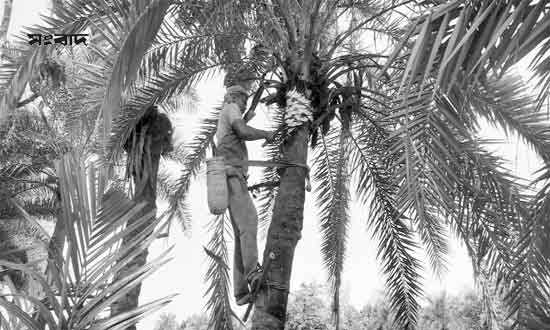 লালপুর (নাটোর) : খেজুর গাছ পরিচর্যা করছেন গাছি -সংবাদ