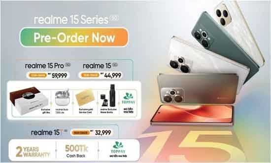 বাংলাদেশে রিয়েলমি ১৫ সিরিজ উন্মোচনের ঘোষণা দিয়েছে স্মার্টফোন ব্র্যান্ড রিয়েলমি। সিরিজটিতে থাকছে তিনটি মডেল- রিয়েলমি ১৫ ফাইভজি, রিয়েলমি ১৫ প্রো ফাইভজি ও রিয়েলমি ১৫টি ফাইভজি। ক্রেতারা তাদের পছন্দের মডেল ১২-১৫ অক্টোবর পর্যন্ত প্রি-বুক করতে পারবেন।