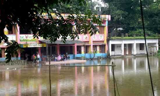 কিছুদিনের টানা বৃষ্টির পর সরজমিনে যেয়ে দেখা যায়, প্রধান ভবনের সামনের মাঠজুড়ে পানি জমে আছে। শিক্ষক ও শিক্ষার্থীরা পানি ও কাদামাখা পথ ধরে বিদ্যালয় ভবনে প্রবেশ করছে। মাঠে খেলাধুলা তো দূরের কথা, দাঁড়ানোও কষ্টকর। আবার মাঠে জমে থাকা পানির কারণে তীব্র দুর্গন্ধ ছড়িয়ে পড়ে। আশপাশের বাসাবাড়ির পানি ও কাদার মিশ্রণে তৈরি হয় অস্বাস্থ্যকর পরিবেশ। বিদ্যালয়ের একাধিক শ্রেণিকক্ষের দেয়ালে স্যাঁতসেঁতে দাগ স্পষ্ট, আর প্রধান ভবনটি ঝুঁকিপূর্ণ অবস্থায় দাঁড়িয়ে আছে। তৃতীয় শ্রেণির ছাত্র ফাহিম জানায়, ‘সামান্য বৃষ্টি হলেই মাঠ ভরে যায় পানিতে। তখন আমরা ভিজে ভিজেই ক্লাসে যাই। খেলাধুলা বন্ধ থাকে। আমাদের শরীরচর্চা হয় না। এমন পরিস্থিতিতে আমাদের অনেক কষ্ট হয়।’ দ্বিতীয় শ্রেণির ছাত্রী ফারিহা রোজা বলে, ‘কাদা আর দুর্গন্ধ হয়। ক্লাসে বসে পড়াশোনা করতে খুব কষ্ট হয়। মাঝে মাঝে শ্বাস নিতে কষ্ট হয়। খেলতে পারিনা। সব সময় ক্লাসেই বসে থাকি।’বিদ্যালয়ের সহকারী শিক্ষক দীপা ম-ল বলেন, ‘একজন শিশুর বিকাশে পড়াশোনার পাশাপাশি খেলাধুলা অপরিহার্য। কিন্তু জলাবদ্ধতার কারণে আমাদের শিক্ষার্থীরা সেই সুযোগ থেকে বঞ্চিত হচ্ছে। এতে তাদের মানসিক বিকাশ বাধাগ্রস্ত হচ্ছে। আর আমাদের চলাচলেও অনেক কষ্টকর হয়ে দাড়িয়েছে।’