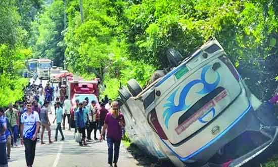 এদিকে ফায়ার সার্ভিস কর্মীরা দুর্ঘটনাস্থল থেকে দুইজনের মরদেহ উদ্ধার করলেও, স্থানীয়দের ধারণা, বাসটির নিচে আরও মরদেহ থাকতে পারে। আহতদের অনেকের অবস্থা আশঙ্কাজনক বলে জানিয়েছেন চিকিৎসকরা।