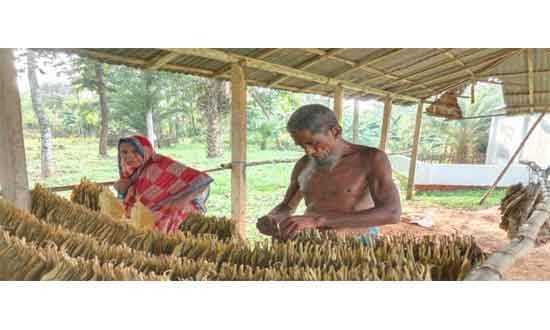 মধুপুর (টাঙ্গাইল): গাদিলা পাতা শুকাচ্ছে রমজান আলী দম্পতি -সংবাদ