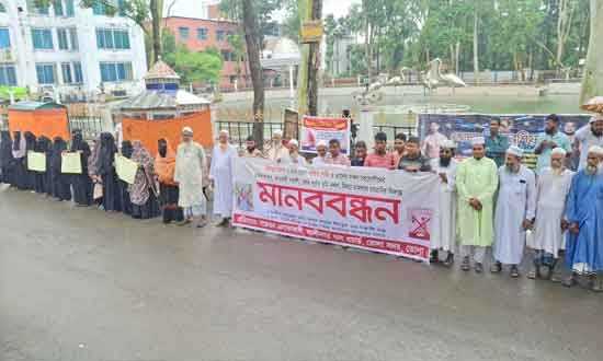 নেশা ছেড়ে কলম ধরি মাদক মুক্ত সমাজ গড়ি এই শ্লোগানে ভোলার ইলিশা এলাকায় গতকাল শুক্রবার মানববন্ধন ও র্যালি করেছে স্থানীয়রা। বাংলাদেশ কৃষক ঐক্য ফাউন্ডেশন ও সামাজিক অপরাধ প্রতিরোধ ফাউন্ডেশনের আয়োজনে এই কর্মসূচি পালন করা হয়। গতকাল শুক্রবার জুমার নামাজের পর মানববন্ধনে অংশ নেন স্থানীয় মুসিল্লীরাও। অংশ নেন বিভিন্ন রাজনৈতিক দলের নেৃতবৃন্দও। এ সময় বক্তব্য রাখেন আয়োজক সংগঠনের কেন্দ্রীয় কমিটির সভাপতি সাহাব উদ্দিন ফরাজী, সংগঠনের কেন্দ্রীয় কমিটির সাধারন সম্পাদক মিজানুর রহমান, সংগঠনের উপদেষ্টা ও জেলা জামায়াতের নায়েবে আমির অধ্যক্ষ নজরুল ইসলাম, উপজেলা জামায়াতে আমির মোস্তফা কামাল, ছাত্রদল নেতা মো. নজরুল ইসলাম সমুন, সাবেক স্বাস্থ কর্মকর্তা কামরুল ইসলাম, যুবদল নেতা জিয়াউর রহমান ফরাজি।