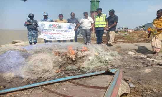 গোয়ালন্দ (রাজবাড়ী) : জব্দকৃত জাল ধ্বংস করছে প্রশাসন -সংবাদ