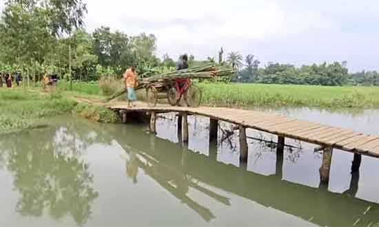 টাঙ্গাইল : জরাজীর্ণ সাঁকো দিয়ে পার হচ্ছে বাঁশবাহী ভ্যান -সংবাদ