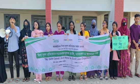 অনুষ্ঠানে ইয়ুথনেট গ্লোবালের জেলা সমন্বয়কারী সাজিদ মাহমুদ, উপজেলা সমন্বয়কারী মো. ইমরান হোসেনসহ সংগঠনের জেলা ও উপজেলা টিমের সদস্যরা উপস্থিত ছিলেন। মানববন্ধন শেষে একটি র্যালি শহরের প্রধান সড়ক প্রদক্ষিণ করে প্রেসক্লাব চত্বরে এসে শেষ হয়। অংশগ্রহণকারীরা ব্যানার, ফেস্টুন ও প্ল্যাকার্ডের মাধ্যমে সিসা দূষণ প্রতিরোধে সচেতনতা বার্তা প্রচার করেন। এ ছাড়া পথচারী ও দোকানিদের মাঝে লিফলেট বিতরণ করা হয়। আলোচনা সভায় বক্তারা বলেন, সিসা শিশুদের মস্তিষ্ক ও শারীরিক বিকাশে মারাত্মক ক্ষতি করে এবং প্রাপ্তবয়স্কদের ক্ষেত্রেও নানা জটিল রোগের কারণ হয়। তারা সিসা দূষণ প্রতিরোধে সবাইকে সচেতন হওয়ার আহব্বান জানান।