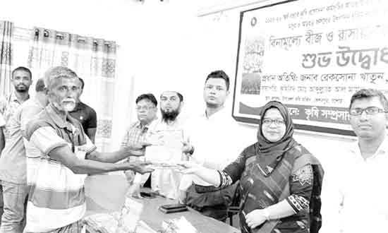 সোমবার উপজেলা কৃষি অফিস চত্বরে উপজেলা কৃষি কর্মকর্তা আব্দুল্ল্যাহ আল মামুনের সভাপতিত্বে প্রধান অতিথি হিসেবে কৃষকদের হাতে সরকারি বিনামূল্যের বীজ ও সার তুলে দিয়ে এর উদ্বোধন করেন, উপজেলা নির্বাহী অফিসার রেকসোনা খাতুন।