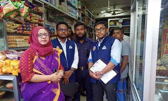 উক্ত অভিযানে পণ্য মোড়কজাত নিবন্ধন সনদ গ্রহণ ব্যাতীত ফার্মেন্টেড মিল্ক (দই) পণ্য বিক্রয় বিতরণের অপরাধে-লক্ষ্মী নারায়ণ মিষ্টান্ন ভাণ্ডারকে ১০,০০০ টাকা, মধুবন সুইটমিটকে ১০,০০০ টাকা ও ভাই ভাই হোটেল এন্ড নন্দ কেবিনকে ১০,০০০ টাকা এবং