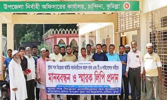 দেশজুড়ে খুচরা সার বিক্রেতাদের লাইসেন্স স্থগিত না করার দাবিতে কুমিল্লার চান্দিনা উপজেলা নির্বাহী অফিসারের কার্যালয় প্রাঙ্গণে মানববন্ধন করে খুচরা সার ব্যবসায়ীরা। খুচরা সার বিক্রেতা এসোসিয়েশন অব বাংলাদেশ -কেএসবিএবি এর চান্দিনা শাখার আয়োজনে ওই মানববন্ধন হয়। পরে তারা কৃষি মন্ত্রণালয়ের সচিব বরাবর স্মারকলিপি প্রদান করেন। চান্দিনা উপজেলা নির্বাহী অফিসার (ইউএনও) মোহাম্মদ আশরাফুল হক এর মাধ্যমে ওই স্মারকলিপি প্রেরণ করা হয়।