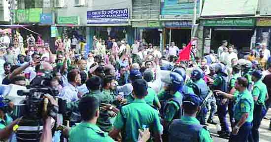বুধবার চট্টগ্রাম নগরের আগ্রাবাদ এলাকায় বিক্ষোভ সমাবেশ করেছে শ্রমিক-কর্মচারী ঐক্য পরিষদ (স্কপ) -সংবাদ