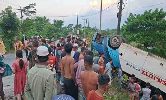 প্রত্যক্ষদর্শীরা জানান, সুনামগঞ্জের টাংগুয়ার হাওরে ভ্রমণের উদ্দেশ্যে ঢাকা থেকে বাংলাদেশ কেমিক্যাল ইন্ডাস্ট্রিজ কর্পোরেশনের লি.-এর ১১ উচ্চপদস্ত কর্মকর্তা স্বপরিবারে দুরপাল্লার বাস সেঁজুতি ট্রাভেলস যোগে (১৫-৬০৮২) রওয়ান। হন। বাসটি উল্লেখিত স্হানে পৌছালে নিয়ন্ত্রন হারিয়ে খাদে পড়ে যায়। খাদে উল্টে পড়া বাস চাপায় ঘটনাস্থলেই মনজুরা আক্তার ও তাঁর মেয়ে আয়েশা সিদ্দিকা নিহত হন। এঘটনায় বাসে থাকা অন্তত ১০ যাত্রী আহত হয়েছেন।