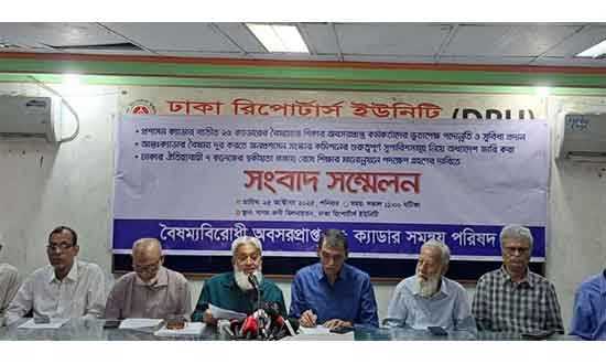 ‘প্রশাসন ক্যাডার ব্যতিত বৈষম্যের শিকার’ বিসিএস ২৫ ক্যাডারের অবসরপ্রাপ্ত কর্মকর্তারা ভূতাপেক্ষ পদোন্নতি ও সুবিধা দাবি করেছেন। একই সঙ্গে তারা আন্তঃক্যাডার বৈষম্য নিরসনে জনপ্রশাসন সংস্কার কমিশনের গুরুত্বপূর্ণ সুপারিশ নিয়ে অধ্যাদেশ জারির দাবি এবং ঢাকার ৭ কলেজ নিয়ে অনুমান নির্ভর কোর্স চালু না করার দাবি জানিয়েছেন।