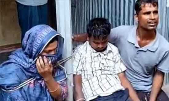 আরেকটি ভিডিওতে দেখা যায়, ঘরের বারান্দার বাঁশের খুঁটির সঙ্গে গৃহবধূ ও গৃহশিক্ষকের দুই হাত ও কোমর রশি দিয়ে বেঁধে রাখা হয়েছে। গৃহশিক্ষককে অসুস্থ অবস্থায় দেখা যায়। এ সময় উপস্থিত বেশ কয়েকজন যুবক ও কিশোর গৃহবধূর প্রতি অশালীন আচরণ করে।