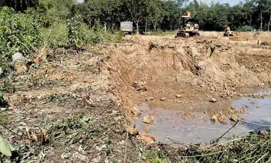 স্থানীয়রা জানান, মহাদেবপুর উপজেলার রাইগাঁ ইউনিয়নের রঘুনাথপুরে মহাদেবপুর-মাতাজীহাট পাকা সড়ক সংলগ্নস্থানে ভিটেমাটি, গাছগাছালী কেটে বিনষ্ট করে পুকুর খনন হচ্ছে গত কয়েকদিন ধরে। গত শুক্রবার সরেজমিনে সেখানে গিয়ে দেখা যায়, দুইটি ভেক্যু মেশিন দিয়ে মাটি কেটে অসংখ্য ড্রাম ট্রাকযোগে পরিবহণ করা হচ্ছে। এতে কয়েক কিলোমিটার সড়কে কাদামাটি পড়ে পিচ্ছিল হয়ে আছে। মাটি কাটার কাজে নিয়োজিত সেখানে উপস্থিত একজন জানালেন, ওইগ্রামের আলাউদ্দিন আলী পুকুরটি খনন করছেন। এজন্য কারো অনুমতি নেননি। তিনি নিজেকে ইউনিয়ন বিএনপির সভাপতির আত্মীয় ও ইউপি মেম্বারের ছেলে বলে দম্ভোক্তিও করেন।