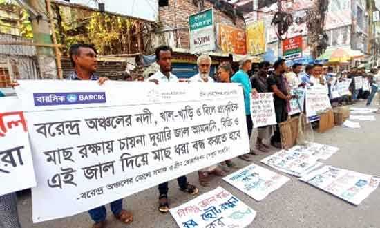 বরেন্দ্র অঞ্চলের নদ-নদী, খাল-খাড়ি ও বিল ও জীববৈচিত্র রক্ষায় এবং দেশীয় মাছের প্রজনন ও জেলে সম্প্রদায়ের জীবন-জীবিকা টিকিয়ে রাখতে চায়না দুয়ারি জালসহ মাছ ধরার ক্ষতিকর বিদেশি সরঞ্জাম নিষিদ্ধ করার দাবিতে বরেন্দ্র অঞ্চল তথা রাজশাহীর স্থানীয় জেলেরা মানববন্ধন ও মৎস্য ও প্রাণিসম্পদ মন্ত্রণালয়ের উপদেষ্টা বরাবর স্মারকলিপি প্রদান করেছে।