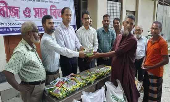 গতকাল সোমবার উপজেলা কৃষি অধিদপ্তরের আয়োজনে কৃষক প্রশিক্ষণ কেন্দ্র চত্বরে বীজ ও সার বিতরণ করেন উপজেলা নিবার্হী অফিসার রাজ কুমার বিশ্বাস।