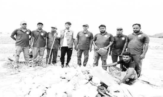 শরণখোলা : বনরক্ষীরা সাগর থেকে ভেসে আসা প্লাস্টিক ও পলিথিন বর্জ্য অপসারণ করছেন -সংবাদ