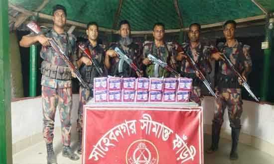 রাজশাহীর দামকুড়া ও গোদাগাড়ী সীমান্ত এলাকা থেকে রাজশাহী ব্যাটালিয়ন(১ বিজিবি) মদ ও পাতার বিড়ি আটক করেছে। গত রোববার দিনগত রাতে গোপন তথ্যেও উপর ভিত্তি করে রাজশাহী ব্যাটালিয়ন(১ বিজিবি) এর সাহেবনগর বিওপির টহলদল সীমান্ত পিলার ৬১/১ এস এবং ৪৫/২-এস হতে বাংলাদেশের অভ্যন্তরে চরমাজারদিয়াড় এলাকায় মাদক বিরোধী অভিযান চালিয়ে মালিকবিহীন ২২ বোতল ভারতীয় মদ ও ৬শত প্যাকেট ভারতীয় পাতার বিড়ি আটক করেছে। ১ বিজিবির সহকারী পরিচালক মোঃ সোহাগ মিলন জানান আটককৃত মাদকদ্রব্য দামকুড়া থানায় ও ভারতীয় পাতার বিড়ি শুল্ক অফিসে হস্তান্তর করা হয়েছে।