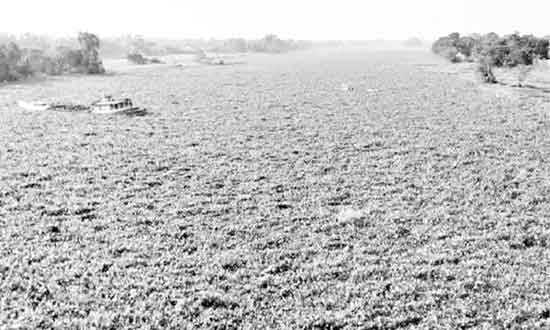 মতলব (চাঁদপুর) : ধনগোদা নদী এভাবেই কচুরিপানায় ঢেকে রয়েছে -সংবাদ