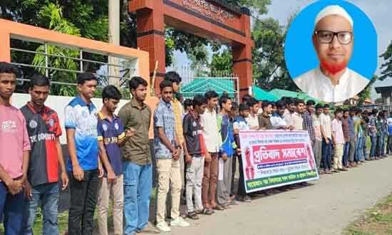 সিরাজগঞ্জের সলঙ্গা থানায় একটি বিদ্যালয়ের প্রধান শিক্ষককে লাঞ্ছিত করার অভিযোগ উঠেছে বিএনপি নেতার বিরুদ্ধে। এ ঘটনার প্রতিবাদে বৃহস্পতিবার রামকৃষ্ণপুর ইউনিয়নের উনুখাঁ পাগলাপীর উচ্চ বিদ্যালয়ের সামনে প্রতিবাদ সমাবেশ করেছেন শিক্ষক, অভিভাবক এবং প্রাক্তন ও বর্তমান শিক্ষার্থীরা।