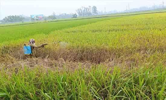 ১ওষুধ ব্যবহার করার সময় ধানের গোড়া ফাঁক করে স্প্রে দিতে হবে কারণ ঔষধ যেন ধানের গোড়া পর্যন্ত পৌঁছাতে পারে ।তাহলে কারেন্ট প্রকার আক্রমণ থেকে রক্ষা পাওয়া যাবে। এছাড়াও বৃষ্টির পর কারেন্ট পোকার যে উপদ্রব হয়, তা থেকে ধান রক্ষায় কৃষকদের প্রয়োজনীয় পরামর্শ দেওয়া হচ্ছে।