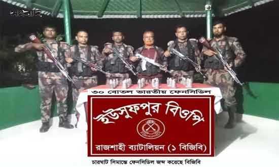 রাজশাহীর চারঘাট সীমান্ত থেকে ভারতীয় ফেন্সিডিল আটক করেছে রাজশাহী ব্যাটালিয়ন(১-বিজিবি)। গতকাল বৃহস্প্রতিবার রাজশাহী ব্যাটালিয়ন(১-বিজিবি) এর সহকারী পরিচালক মো. মোহাগ মিলন জাানান গোয়েন্দা তথ্যের উপর ভিত্তি করে বৃহস্প্রতিবার(৬নভেম্বর) দিনগত রাত সাড়ে ৩টায় ইউসুফপুর বিওপি সীমান্ত পিলার ৭২/২এস হতে প্রায় ১কিলোমিটার বাংলাদেশের অভ্যন্তওে চারঘাট থানার চকমুক্তারপুর এলাকায় হানা মালিকবিহিীন ৩০ বোতল ফেন্সিডিল আটক করেছে। আটককৃত মাদকদ্রব্য ফেন্সিডিল চারঘাট থানায় হস্তান্তর করা হয়েছে বলেও তিনি জানান।
