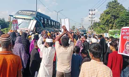 শুক্রবার (৭ নভেম্বর) দুপুরে শিক্ষার্থী হত্যার ঘটনায় ঢাকা-আরিচা মহাসড়কের সাভারের সিএনবি এলাকায় ঢাকামুখী লেনে অবরোধ করে বিচারের দাবি জানায় বিক্ষোভকারীরা। অন্যদিকে সাভারের ভাকুর্তা ইউনিয়নের মশুরীখোলা এলাকায় ভাকুর্তা-মশুরীখোলা আঞ্চলিক সড়ক অবরোধ করে স্থানীয় এলাকাবাসী ও ভুক্তভোগীর পরিবার।