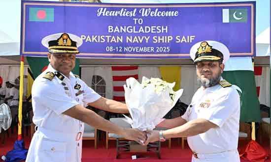 চট্টগ্রাম বন্দরে এসে পৌঁছেছে পাকিস্তান নৌবাহিনীর জাহাজ পিএনএস সাইফ। চার দিনের শুভেচ্ছা সফরে শনিবার জাহাজটি চট্টগ্রাম বন্দরে এসে পৌঁছালে চট্টগ্রাম নৌ অঞ্চলের পক্ষ থেকে পাকিস্তানের নাবিকদের স্বাগত জানানো হয়। আইএসপিআরের বিজ্ঞপ্তিতে এ তথ্য জানানো হয়েছে।