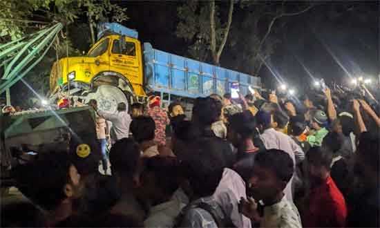 পুলিশ ও স্থানীয় সূত্রে জানা গেছে, একটি মালবোঝাই ট্রাক গতকাল সন্ধ্যায় লাকসাম থেকে চৌদ্দগ্রাম অভিমুখে যাচ্ছিল। দ্রুতগতির ট্রাকটি লাকসাম-চৌদ্দগ্রাম আঞ্চলিক সড়কের ফেলনা এলাকায় আসার পর বিপরীত দিক থেকে আসা একটি যাত্রীবাহী সিএনজি ও একটি অটোরিকশাকে চাপা দেয়। এতে সিএনজিটি দুমড়ে মুছড়ে ট্রাকের নিচে চলে যায়। এতে ঘটনাস্থলে দুই জন পুরুষ ও এক জন নারীসহ ৩ জন নিহত হয়। নিহতরা সবাই সিএনজির যাত্রী, তাদের পরিচয় জানা যায়নি। এ দুর্ঘটনায় আরও ৫ জন আহত হয়। আহতরা হলেন, জেলার নাঙ্গলকোট উপজেলার মহিশ্বর গ্রামের আবুল বাশারের ছেলে আবু তৈয়ব (২৬), একই উপজেলার বাঙ্গড্ডা গ্রামের জাহাঙ্গীর হোসেনের ছেলে আব্দুর রহিম (২৭), আলী হোসেনের ছেলে অটো চালক মাহবুবুল হক ও আবুল কালামের স্ত্রী আনোয়ারা বেগম (৪২)। এদিকে দুর্ঘটনার খবর পেয়ে চৌদ্দগ্রাম থেকে ফায়ার সার্ভিসের কর্মীরা ঘটনাস্থলে পৌছে এবং স্থানীয়দের সহায়তায় উদ্ধার কাজ শুরু করে। আহতদের উদ্ধার করে চৌদ্দগ্রাম উপজেলা স্বাস্থ্য কমপ্লেক্সে নিয়ে যাওয়া হয়। এদের মধ্যে আব্দুর রহিম, আনোয়ারা বেগম, আবু তৈয়বের অবস্থা আশঙ্কাজনক বলে জানা গেছে। চৌদ্দগ্রাম থানার ওসি মো. হিলাল উদ্দিন আহমেদ বলেন, দুর্ঘটনার খবর পেয়ে ঘটনাস্থলে পুলিশ ও ফায়ার সার্ভিস যায়। এ দুর্ঘটনায় ৩ জন মারা গেছেন। মৃতদের পরিচয় জানার চেষ্টা চলছে। এ দুর্ঘটনায় মৃতের সংখ্যা আরও বাড়তে পারে বলে ওসি জানিয়েছেন।