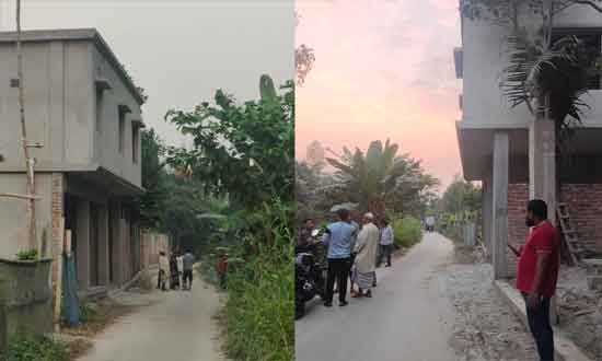 স্থানীয় সূত্রে জানা যায়, উপজেলার কাঠাদিয়া গ্রামে সড়কের পাশে দ্রুতগতিতে ভবনটির নির্মাণকাজ শেষ করা হয়েছে। সড়কের পাশ থেকে মাত্র কয়েক ফুট দূরত্বে ভবনের দেয়াল উঠানো হলেও উপরের তলায় রাস্তার উপরে চলে এসেছে। ফলে যানবাহনের চলাচলে এবং পথচারীরাও ঝুঁকির মধ্যে পড়েছেন। এ বিষয়ে এলাকাবাসী জানিয়েছেন, রাস্তা সরু, বড় গাড়ি গেলে মানুষকে একপাশে সরে দাঁড়াতে হয়। এখন ভবনটি উঠায় রাস্তা আরও সরু হয়ে গেছে। কোনো দুর্ঘটনা ঘটলে এর দায় কে নেবে? এব্যাপারে কথা বলতে রাজি হয়নি বাদশা মিয়া শেখ। তার ভাই সুমন বলেন, আমরা নিজেদের জমিতে ভবন নির্মাণ করেছি, বক্তব্য দেওয়ার কিছু নাই।