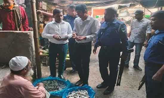 মঙ্গলবার জাতীয় ভোক্তা-অধিকার সংরক্ষণ অধিদপ্তর কুষ্টিয়া জেলা কার্যালয়ের সহকারী পরিচালক মো. মাসুম আলীর নেতৃত্বে পরিচালিত এই অভিযানে উপস্থিত ছিলেন কুষ্টিয়া সদর উপজেলার সিনিয়র উপজেলা মৎস্য কর্মকর্তা ও জেলা পুলিশের একটি টিম। অভিযানে মেসার্স মকুল মৎস্য ভান্ডার ও মেসার্স খোশবার হোসেন মৎস্য ভান্ডার দুইজন মৎস্য আড়তদারকে প্রতি জন পঞ্চাশ হাজার টাকা করে মোট এক লক্ষ টাকা জরিমানা করা হয়। এছাড়া খুচরা বিক্রেতা পাতু মাছের দোকান, রাজু মাছের দোকান ও মনোয়ার মাছের দোকান এই তিনজনকে প্রতি জন দুই হাজার টাকা করে মোট ছয় হাজার টাকা জরিমানা করা হয়।