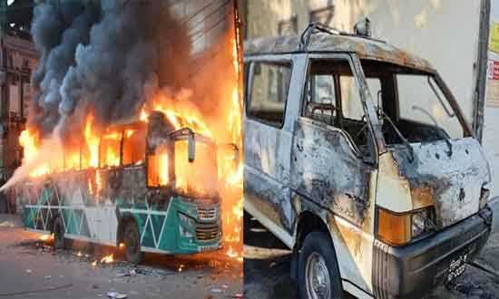সিলেটের শহীদ শামসুদ্দিন আহমদ হাসপাতালের পার্কিংয়ে দাঁড়িয়ে থাকা একটি অ্যাম্বুলেন্স ও কুমারগাও বাসস্ট্যান্ডের একটি বাসে আগুন দিয়েছে দুর্বৃত্তরা। রোববার রাত আড়াইটা থেকে সাড়ে ৩টার দিকে দিকে এসব অগুন দেওয়ার ঘটনা ঘটে। তবে এতে কোনো হতাহতের ঘটনা ঘটেনি। হাসপাতালের সিসিটিভি ফুটেজে দেখা যায়, দুটি মোটরসাইকেলে করে পাঁচজন তরুণ প্রথমে পার্কিংয়ে প্রবেশ করে। পরে তাদের দেয়া আগুনে পুড়ে যায় অ্যাম্বুলেন্সটি। খবর পেয়ে ফায়ার সার্ভিস কর্মীরা ঘটনাস্থলে পৌঁছে আগুন নিয়ন্ত্রনে আনেন। ঘটনার সিসিটিভি ফুটেজ সংগ্রহ করেছে পুলিশ। এর সঙ্গে জড়িতদের শনাক্তে কাজ চলছে বলে জানিয়েছে পুলিশ। সিলেট ফায়ার সার্ভিসের ফায়ার লিডার মোহাম্মদ ফজল মিয়া জানান, রাত ৩টা ৫০ মিনিটের কুমারগাঁও বাসস্ট্যান্ডে একটি বাসে আগুন দেওয়ার খবর আসে। পরে ফায়ার সার্ভিসের একটি ইউনিট গিয়ে আগুন নিয়ন্ত্রণে আনে।