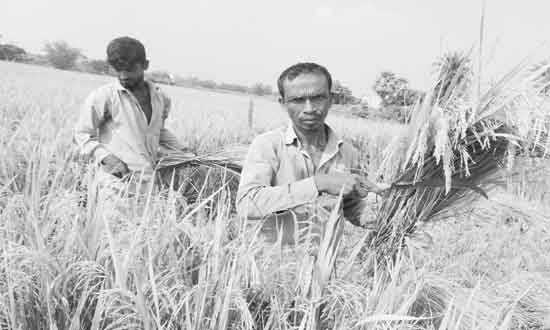 ভালুকা (ময়মনসিংহ) : মল্লিকবাড়ী গ্রামে ধান কাটছেন কৃষক আ: ছাত্তার -সংবাদ