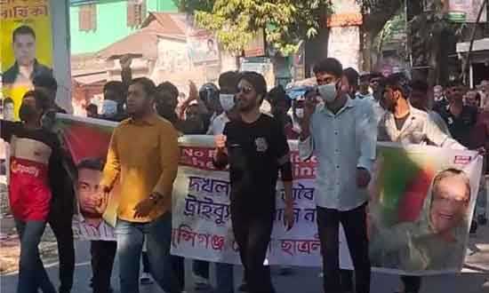 মুন্সীগঞ্জের সিরাজদিখানে পুলিশের উপস্থিতিতেই নিষিদ্ধ ছাত্রলীগ ও যুবলীগের ব্যানারে মিছিল করা হয়েছে। মঙ্গলবার, (১৮ নভেম্বর ২০২৫) সকাল ৯ টার দিকে জেলার সিরাজদিখান উপজেলার বাসাইল ইউনিয়নের ইমামগঞ্জ বাজার এলাকায় এ মিছিল বের করে। উপজেলা যুবলীগের যুগ্ম আহবায়ক জহিরুল ইসলাম লিটুর নেতৃত্বে অর্ধশত নেতাকর্মী মিছিলে যোগ দেয়।