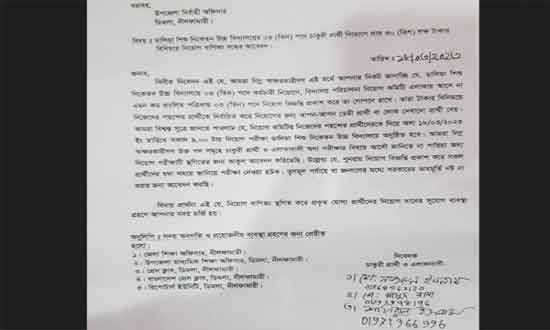 অধিদপ্তরের সহকারী পরিচালক মো. মাঈন উদ্দিন স্বাক্ষরিত ৩১ জুলাই ২০২৫ ইং তারিখের স্মারক নং ৩৭.০২.০০০০.০০০.১০৫-২৭.০০৪৭.২৩.৭৯২ এর আদেশে জানানো হয়, অভিযোগটি প্রতিদ্বন্দ্বী চাকরি প্রার্থী জাকারিয়া হোসেন দাখিল করেন, যেখানে বলা হয় যে, ইনডেক্স বিহীন একজন প্রার্থীকে (মোছা: হালিমা খাতুন) তৃতীয় শিক্ষক হিসেবে নিয়োগ দিয়ে এমপিওভুক্তির আওতায় আনার চেষ্টা করা হয়েছে।