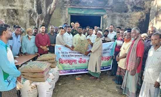 সুনামগঞ্জ জেলার তাহিরপুর উপজেলায় ২০২৫-২৬ অর্থবছরে বোরো (উফশী) ধান উৎপাদন বৃদ্ধির লক্ষ্যে ক্ষুদ্র ও প্রান্তিক কৃষকদের মাঝে প্রণোদনা কর্মসূচির আওতায় বিনামূল্যে বীজ ও সার বিতরণ। আজ ১৯ নভেম্বর বুধবার দুপুরে উপজেলা কৃষি অফিসারের কার্যালয়ের সামনে তাহিরপুর উপজেলা কৃষি সম্প্রসারণ অধিদপ্তর আয়োজনে বিনামূল্যে বীজ ও সার বিতরণ কার্যক্রমের উদ্বোধন করে উপজেলা নির্বাহী কর্মকর্তা মেহেদী হাসান মানিক। উপজেলা কৃষি অফিস সূত্রে জানাযায়, কর্মসূচির আওতায় উপজেলার সাতটি ইউনিয়নের ১১শ ক্ষুদ্র ও প্রান্তিক কৃষকদের প্রতি জন কৃষককে ৫ কেজি বীজ, ১০ কেজি ডিওপি এবং ১০ কেজি এমওপি সার প্রদান করে।