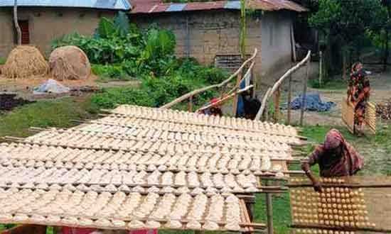 নন্দীগ্রাম (বগুড়া) : কুমড়াবড়ি শুকচ্ছেন শ্রমিক -সংবাদ