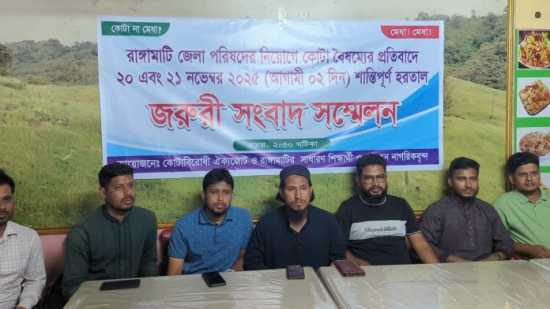 রাঙামাটি জেলা পরিষদে প্রাথমিক সহকারী শিক্ষক নিয়োগ পরীক্ষায় কোটা বৈষম্যের অভিযোগ তুলে একদল চাকরিপ্রার্থী বৃহস্পতিবার ভোর ৬টা থেকে শুক্রবার সন্ধ্যা ৬টা পর্যন্ত হরতালের ডাক দিয়েছে।
