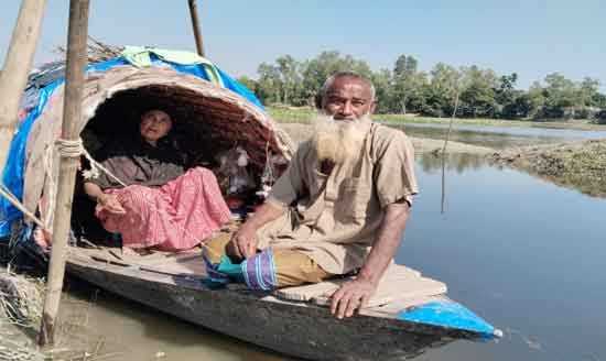 সোনাই ডাঙা বিলের নীরব জলরাশি যত দূর চোখ যায়, তত দূর পর্যন্ত বাস করে অনিশ্চয়তা। সেই অনিশ্চয়তার মাঝেই ভেসে থাকে সিরাজগঞ্জের রায়গঞ্জের ধানগড়া ইউনিয়নের বাশুড়িয়া গ্রামের বৃদ্ধ দম্পতিজামাত আলী (৬৫) ও তার স্ত্রী সখিনা। বহু বছর ধরে তাদের সংসার গড়ে উঠেছে এক পুরনো নৌকার ওপর; এটিই তাদের একমাত্র আশ্রয়, একমাত্র ঠিকানা। বাড়িঘর হারিয়ে একসময় জামাত আলী আশ্রয় নেন শ্বশুরবাড়িতে। কিন্তু সেখানে স্থায়ীভাবে থাকার সুযোগ ছিল না। শেষ পর্যন্ত জলভরা বিলের ওপর ভাসমান একটি পুরনো নৌকাতেই বাঁধা পড়ে তাদের জীবন। ভোর থেকে গভীর রাত রোদ, বৃষ্টি, ঝড় কিংবা শীত সবকিছু সামলেই চলছে তাদের জীবনের লড়াই। খাওয়া, ঘুম, বৃষ্টি থেকে বাঁচাসবই সেই নৌকাতেই। দুই মেয়ের বিয়ে দিলেও নিজের মাথা গোঁজার মতো একটি ঘর জোটেনি তাদের। বার্ধক্যের ভার আর প্রতিদিনের কষ্ট সঙ্গী করেই তারা বেঁচে আছেন পানির ওপর ভাসমান এই আশ্রয়ে। জামাত আলী বললেন, বিয়ের পর থেকেই ঘর নেই। নৌকাই আমাদের ঘর। কোথায় যাব? একবার বজ্রপাতের সময় প্রাণটাই চলে যাচ্ছিল। কিন্তু থাকার মতো জায়গা তো আর নেই। প্রতিবেশী ইমরাম হোসেন বলেন, ছোটবেলা থেকে দেখছি তারা নৌকার ওপরই থাকে। কষ্ট করে দিন চলে। সমাজকর্মী কাজল দাস জানান, তাদের জীবনটা একদম সংগ্রামে ভরা। সমাজের সচেতন মহল একটু নজর দিলেই হয়তো মানবসম্মতভাবে থাকতে পারতেন। উপজেলা সমাজসেবা কর্মকর্তা ও ধানগড়া ইউনিয়নের প্রশাসক ইলিয়াস হাসান শেখ জানান, “বিষয়টি নতুন করে জানা হলো। যদি তাদের বয়স্কভাতা কার্ড না থাকে, দ্রুত ব্যবস্থা নেওয়া হবে। আবেদন করলে অগ্রাধিকার দেওয়া হবে। বিলের বুকভরা নীরবতার মাঝে ভেসে থাকা এই দম্পতির জীবন সমাজের সামনে বড় একটি প্রশ্ন তুলে ধরে— বৃদ্ধ মানুষের মাথা গোঁজার সামান্য আশ্রয় কি পাওয়া এতটাই কঠিন।