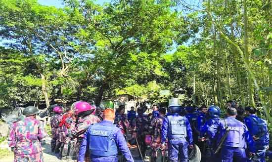 এ সময় আইনশৃঙ্খলা বাহিনীর সদস্যরা সড়কের ব্যারিকেড ভেঙে যেতে চাইলে ধাওয়া-পাল্টা ধাওয়া ও ইট পাটকেল নিক্ষেপের ঘটনা ঘটে। এসময় উভয়পক্ষের অন্তত ২০ জন আহত হয়। এ সময় বিজিবির একটি জীপ গাড়ি, র্যাবের টহল টিমের একটি গাড়ি ও অভিযান পরিচালনায় আনা স্কেভেটর বহনকারী ট্রাক ভাঙচুর করে উত্তেজিত জনতা। পরে আইনশৃঙ্খলা বাহিনীর সদস্যরা ঘটনাস্থল থেকে ৫ জন শ্রমিককে আটক করে।